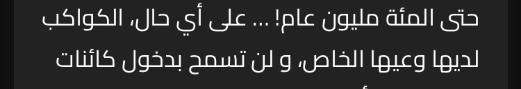 و هنالك من يكتشف الحقيقة، و هو عجوز هرم على قمة كوكبه من حيث القوة، و المستوى، فيستفيد منها كشيئ جانبي، لكنه لا يتقنها ابداً، هؤلاء هم معظم مُكتشفي الحقيقة في الكون، لو كنت احد هؤلاء لما جئت لزيارتك …
