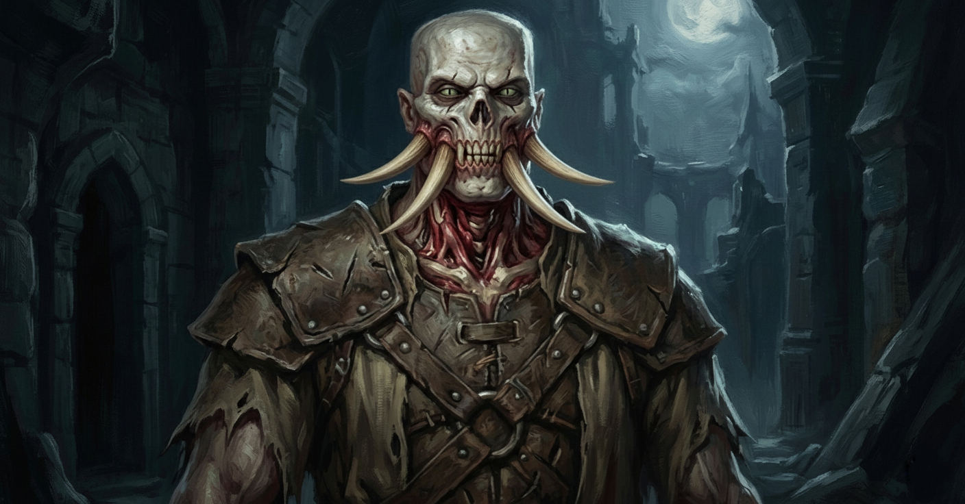 كان شاحب قليلاً، وجهه مربع و عيناه مشقوقتان كالأفعى، عظام الفك خاصته كانت ظاهرة خارج جلده، لدينا اربعة انياب كبار يخترقون خده ظاهرين للعين، اما رقبته فكانت خليط بين اللحم و العظم!