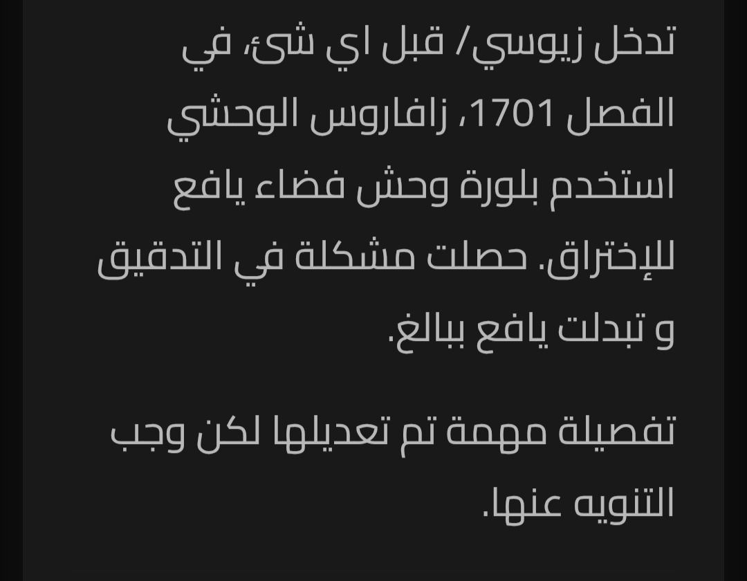 تدخل زيوسي/ قبل اي شئ، في الفصل 1701، زافاروس الوحشي استخدم بلورة وحش فضاء يافع للإختراق. حصلت مشكلة في التدقيق و تبدلت يافع ببالغ.