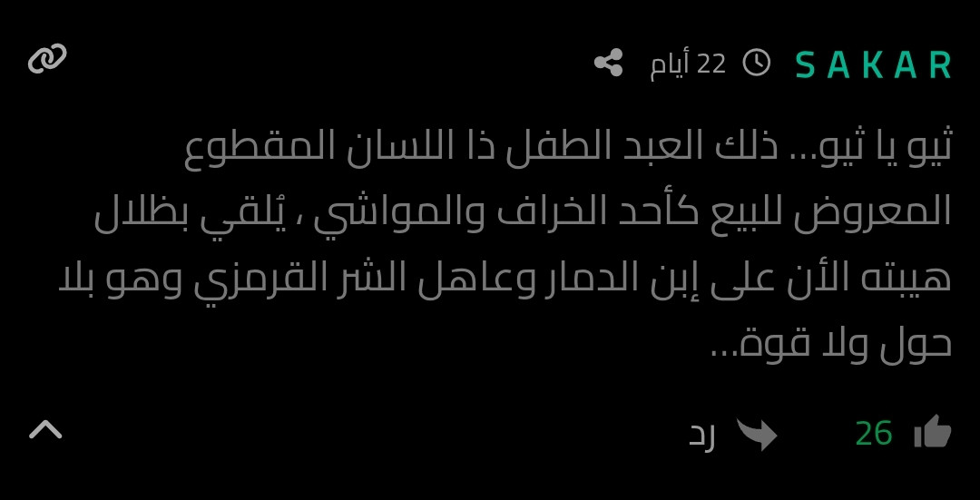 ثم فتح عيناه قليلاً فقط لتظهر السواد الكامن داخلها، “لقد انتهت حرب الجيوش، آن الاوان للسياسة، او لضربة كاسحة تُسقط بها طاغوت… او تسقط بها انت.”