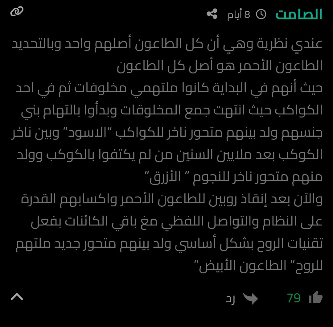 فهمت… ليوسار طلع بسبب روبين (او تطور العفاريت)… كان لازم في نقطة ما انهم ينهوا على اجناس كوكب نيهاري وياطلوا بعض ويموتوا… ولكن بسبب تطورهم ونظامهم المتبع اصبح موتهم مستحيل… فظهر هذا الصغير ليقضي عليهم وينهي دورة حياتهم ولكن السؤال… من تدخل ليفعل هذا؟ القوانين؟ ام هو سيناريو طبيعي ولكنه لم يذكر في التاريخ لغرابته؟؟ ممكن قوة اعلى… يعني المستبصر قال لروبين ان يتعامل معهم ولا يخاف وكذلك ايفرجين… اكيد هناك من حاول فعلها قبله… ممكن في القرن المفقود (قبل ال100 الف عام) ولكن بما ان المستبصر يؤيد روبين وغالبا يريد الدمار او حرب كونية… هناك عدوه ومن يريد ايقافه… قراءة المزيد ..