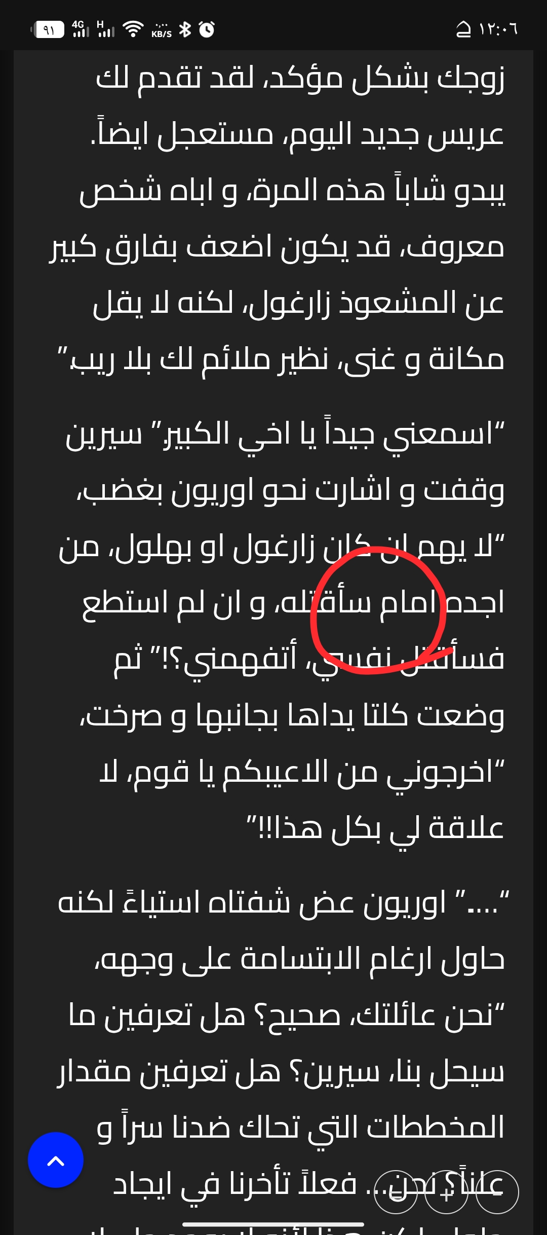 “بالمناسبة، امك رفضت العريس الجديد بشكل قاطع، عرضهم كان مخزي و غير عقلاني كغيرهم، بل يمكن القول انه عرض منفصل عن الواقع كلياً.