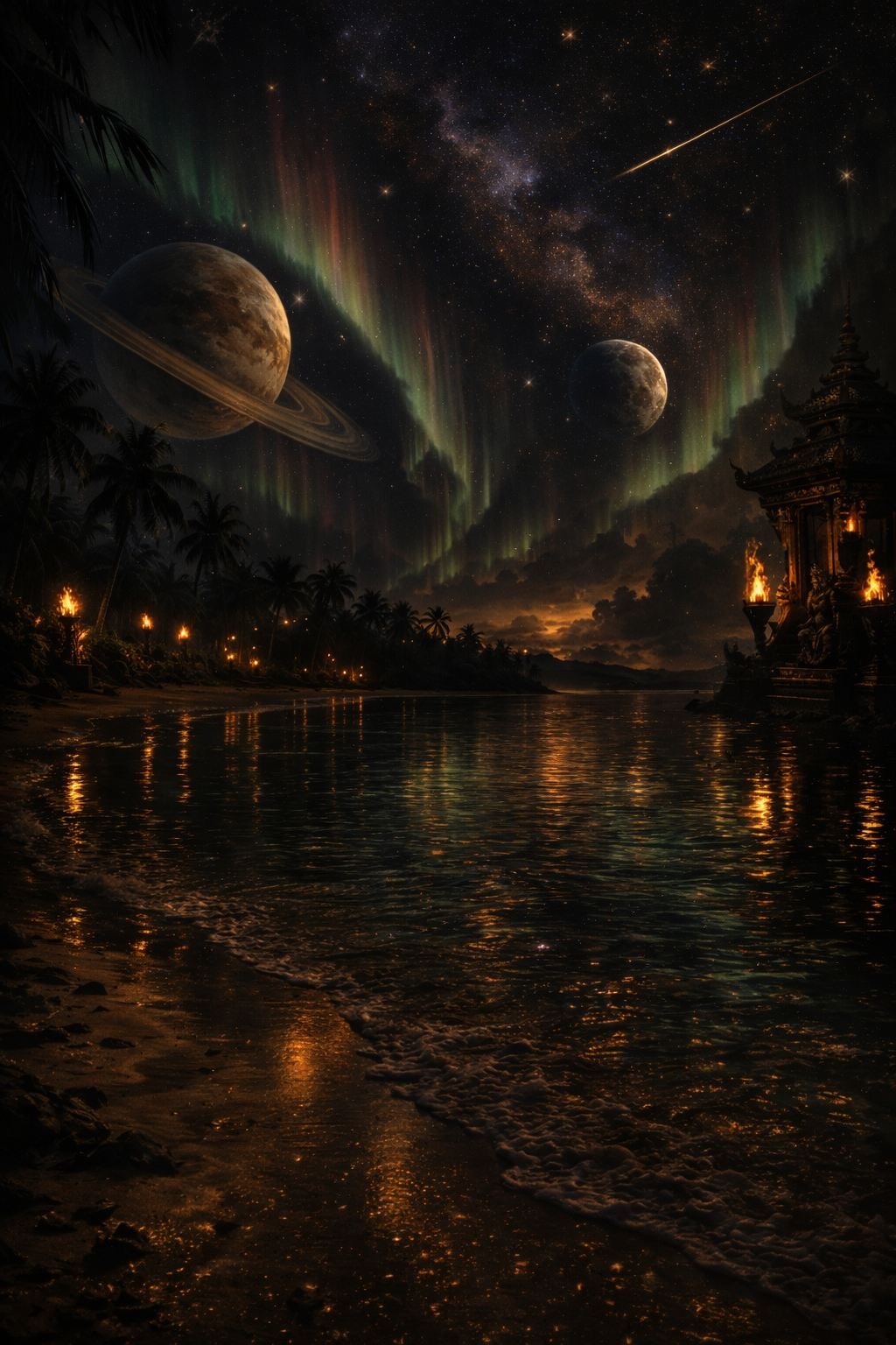 لم تكن السماء فوق كوكب “فيرا” بذلك اللون البنفسجي العميق والكئيب كما كانت في غابر الأيام. الآن، غدت نسيجاً متلألئاً من الزمرد والذهب المشع، حيث يتموج الشفق القطبي وينجرف بينما تداعب الرياح النجمية المدار المُعدَّل للكوكب. عندما قامت “إمبراطورية البداية الحقيقية” بإعادة تموضع “فيرا” ليكون أقرب إلى “حاضنة النجوم” في قلب المجرة الاصطناعية، حولوا الغلاف الجوي إلى لوحة فنية أبدية. حتى بعد مرور قرون، ما زلت أجد نفسي أنظر إلى الأعلى.